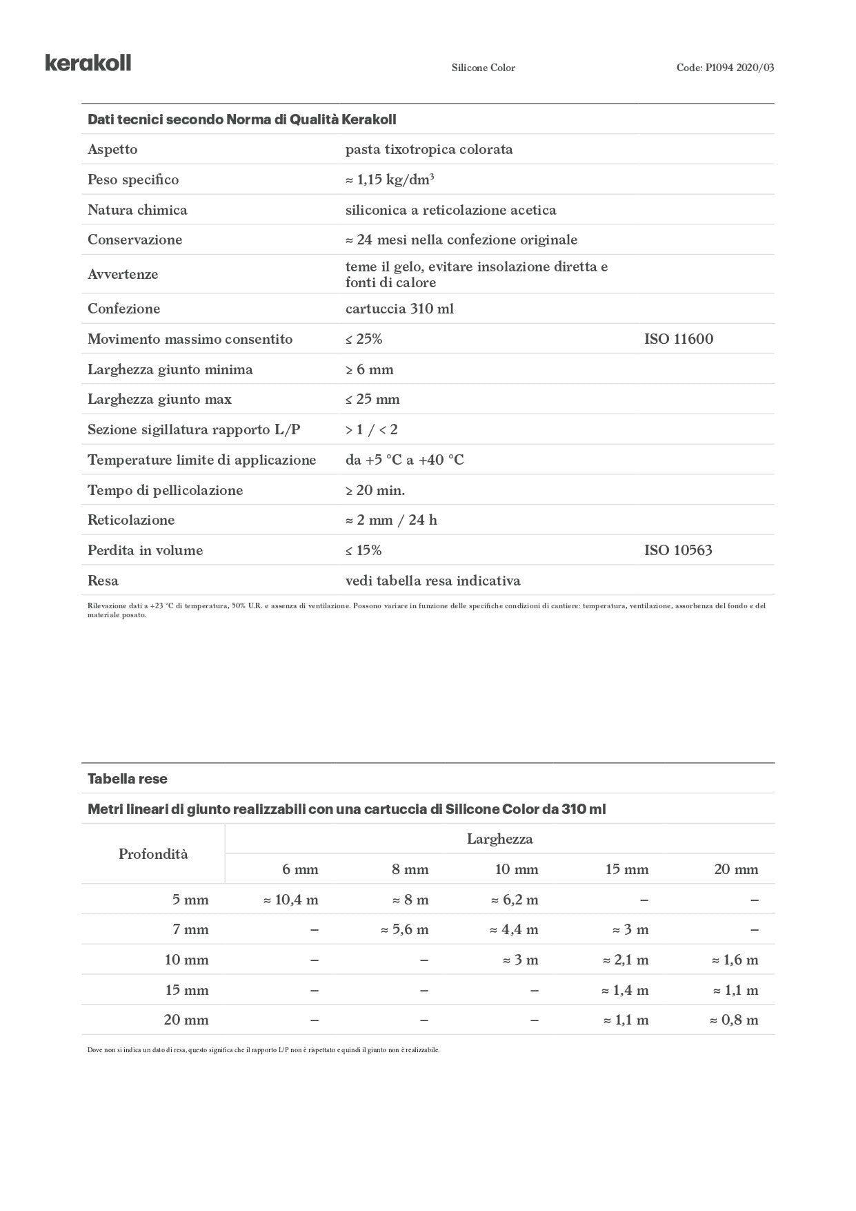 Silicone Color Kerakoll sviluppa un’elevata adesione alle superfici inassorbenti garantendo l’integrità e la tenuta idraulica dei rivestimenti ceramici soggetti a deformazioni.